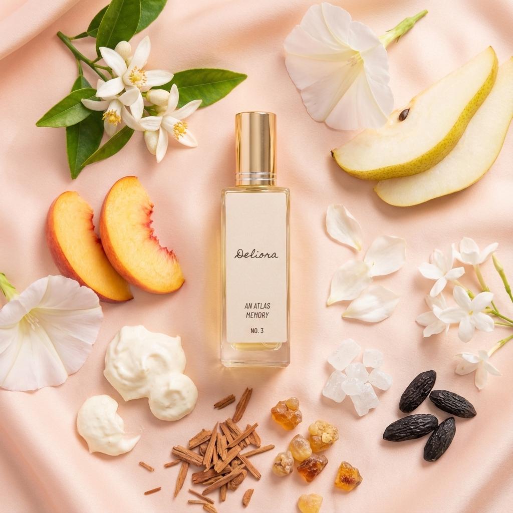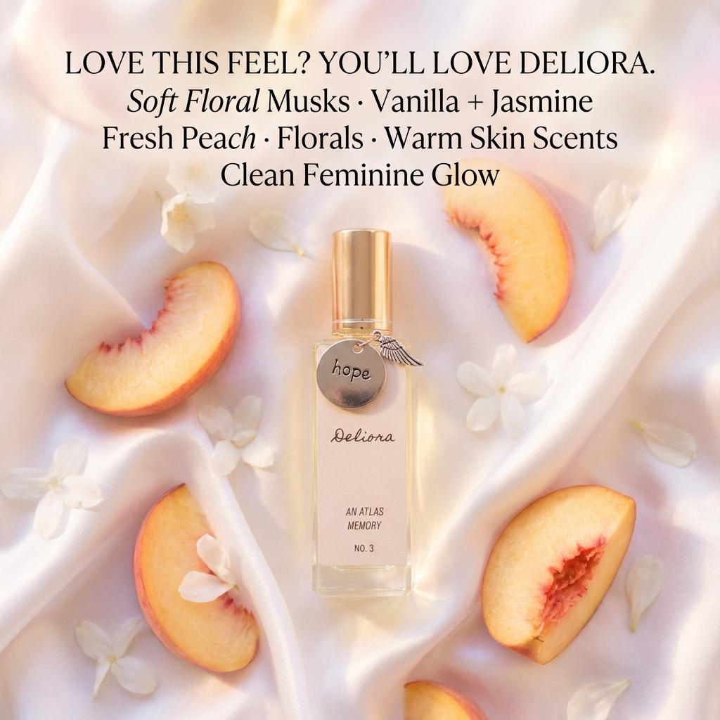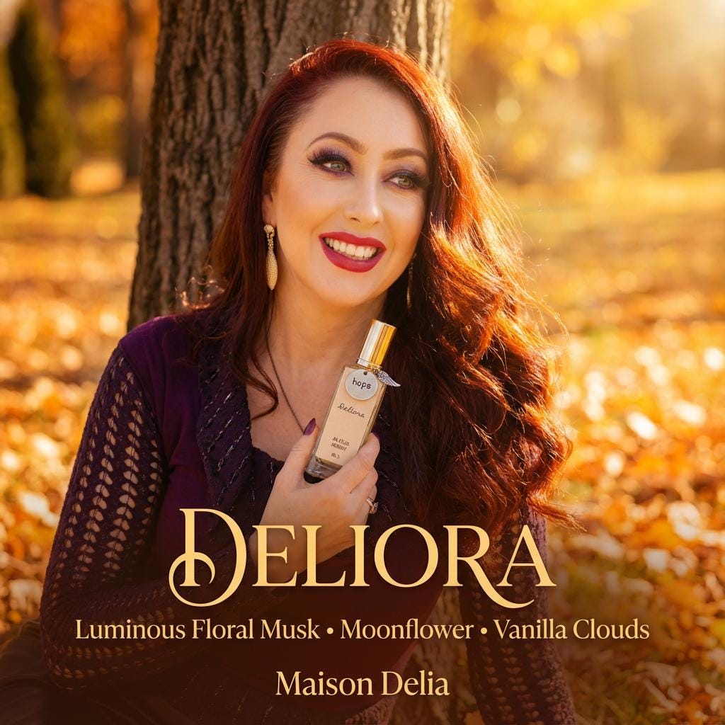 Deliora Perfume • Luminous Floral Musk • Orange Blossom • Peach • Moonflower • Vanilla Clouds • Jasmine • Sandalwood • Amber • Maison Delia