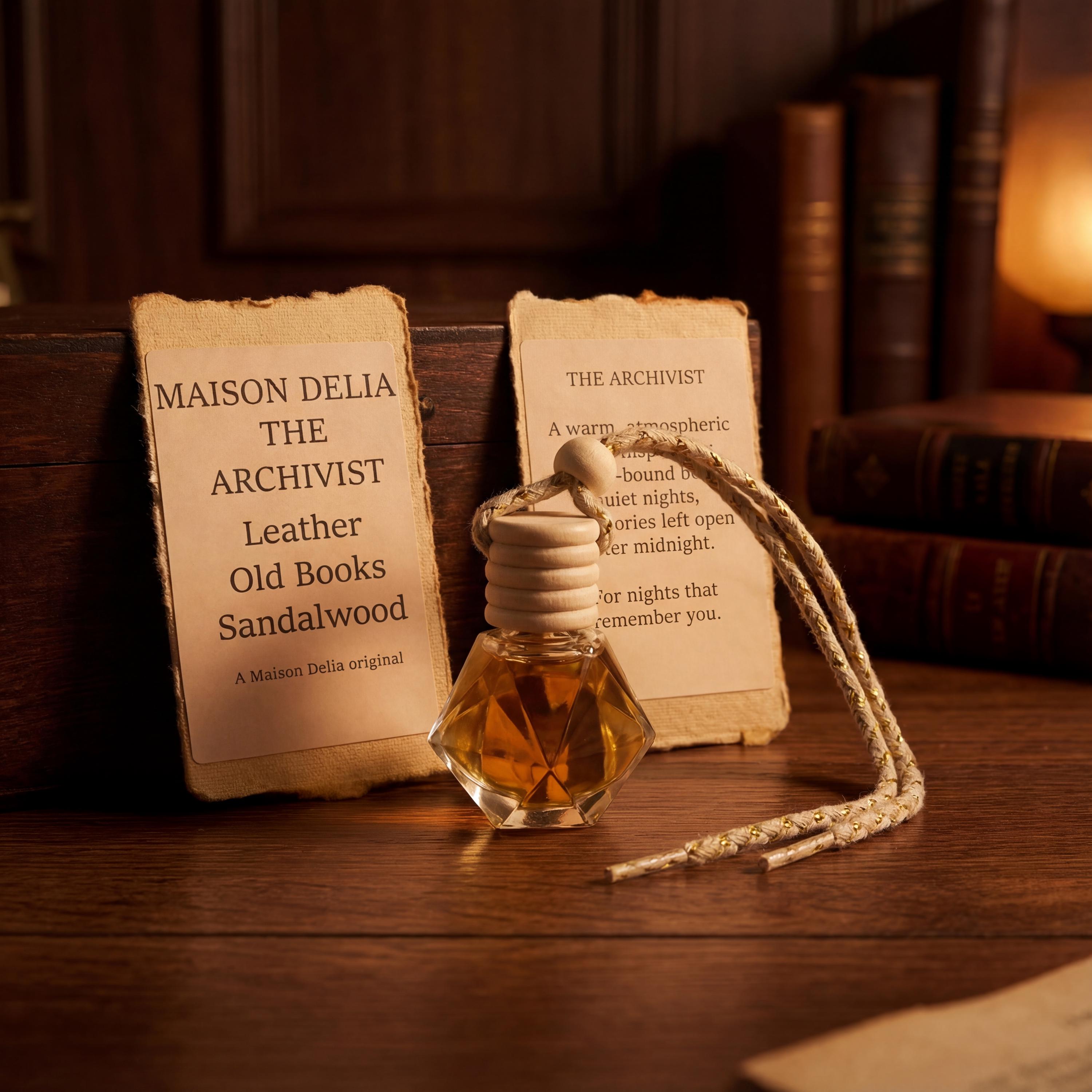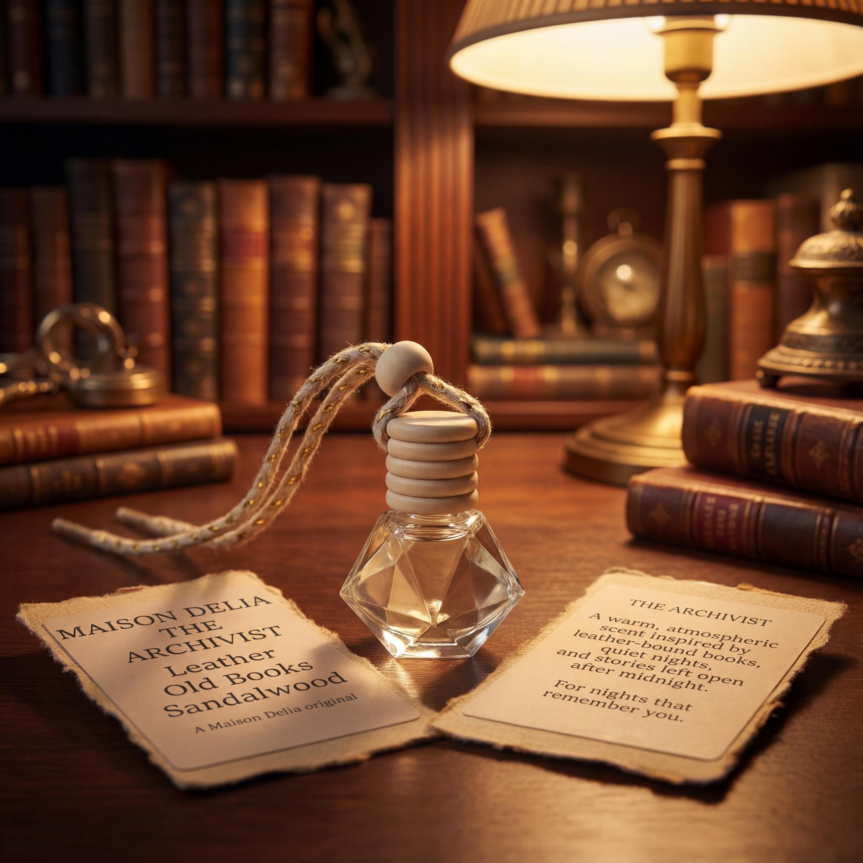 The Archivist Car Air Freshener | Leather & Old Books Scent | Luxury Car Diffuser | Moody Bookish Gift | Maison Delia
